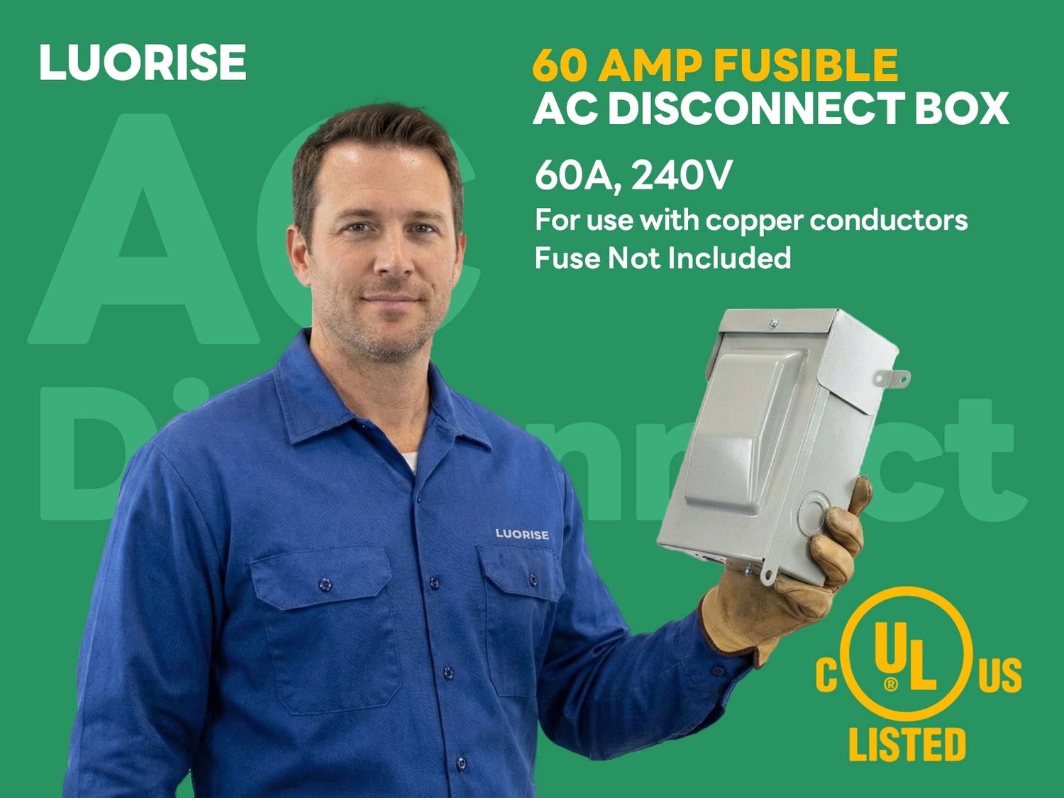 LUORISE AC Disconnect Box Outdoor, 60 Amp Fusible, Fuse Not Included