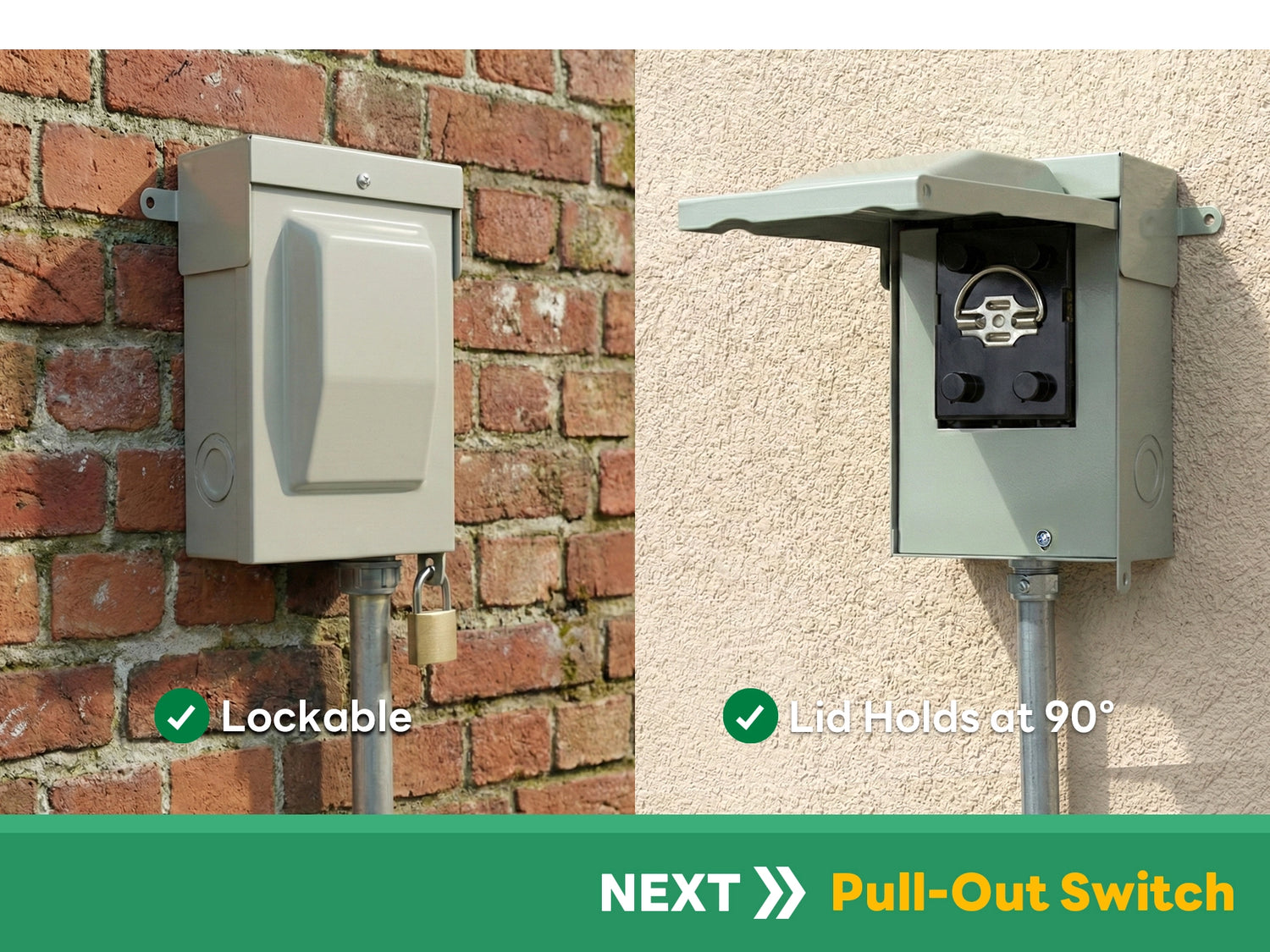 ✔ Easy Pull-Out Handle: User-friendly pull-out switch allows fast and safe power disconnection during installation or service