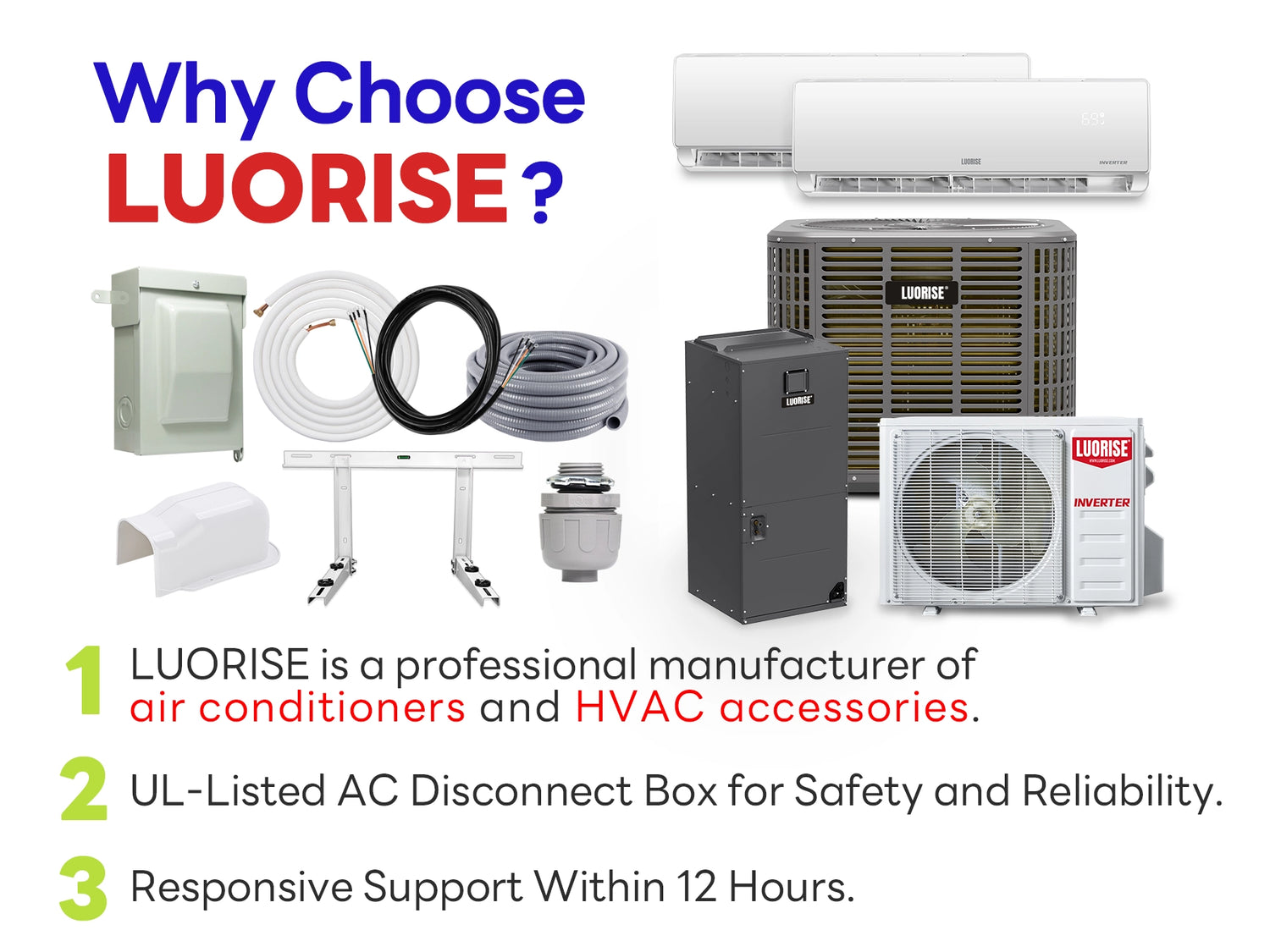 Smart toilets and mini split air conditioners sold on Luoware.com are covered under our standard product warranty. For warranty claims, please refer to our Warranty Policy or contact us at support@luoware.com (smart toilets) or support@luorise.com (mini splits).