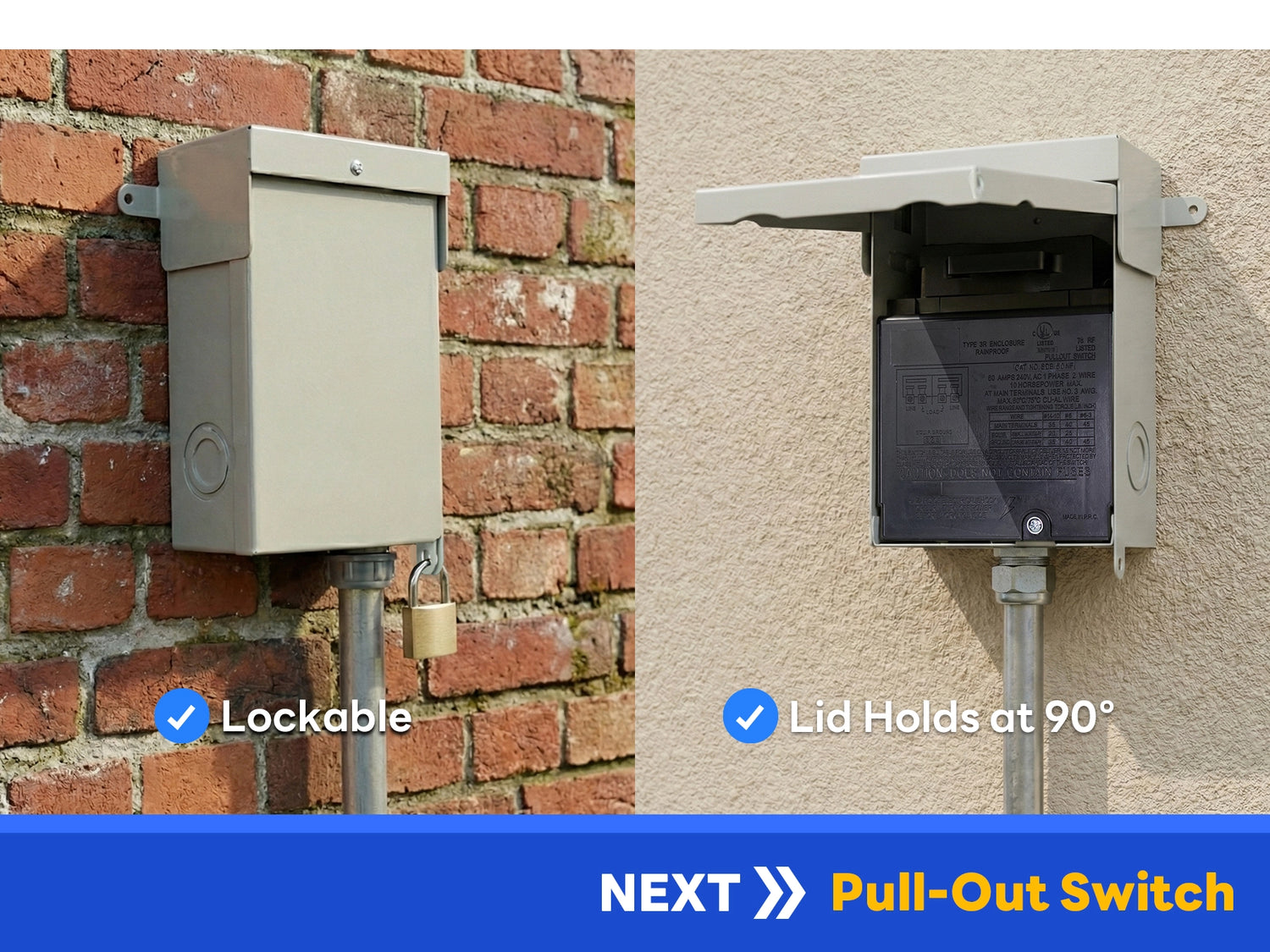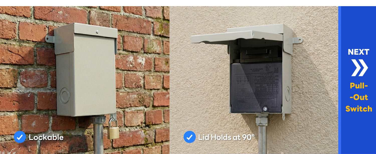 ✔ Easy Pull-Out Handle: Quick on/off pull-out switch provides reliable power disconnection during maintenance or service